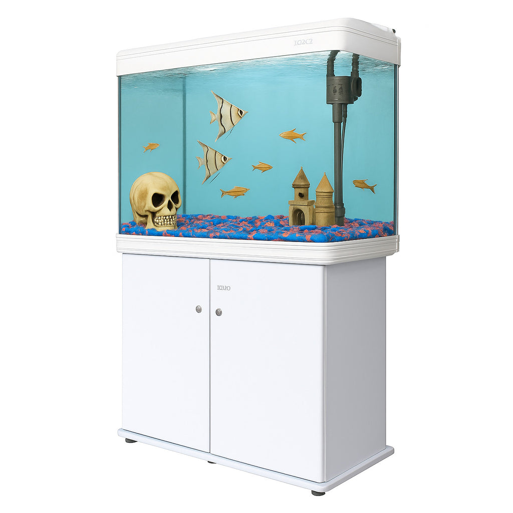 This striking fish tank offers more than just a home for aquatic life—it transforms any room into a serene, living display. Designed with crystal-clear glass and a seamless edge finish, it provides an unobstructed view of your underwater world. Its built-in filtration system ensures both crystal clear waters and peaceful ambience, while the energy-efficient LED lighting enhances fish coloration and mood lighting at the touch of a button. Whether you're a seasoned aquarist or a first-time fish keeper, this modern aquarium fish tank with cabinet combines effortless maintenance with sleek, modern style—making it a standout centrepiece that elevates any space.