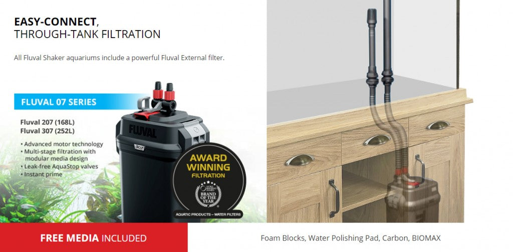 - Supplied with Fluval 307 External Canister Filter & Fluval M300 Aquarium Heater