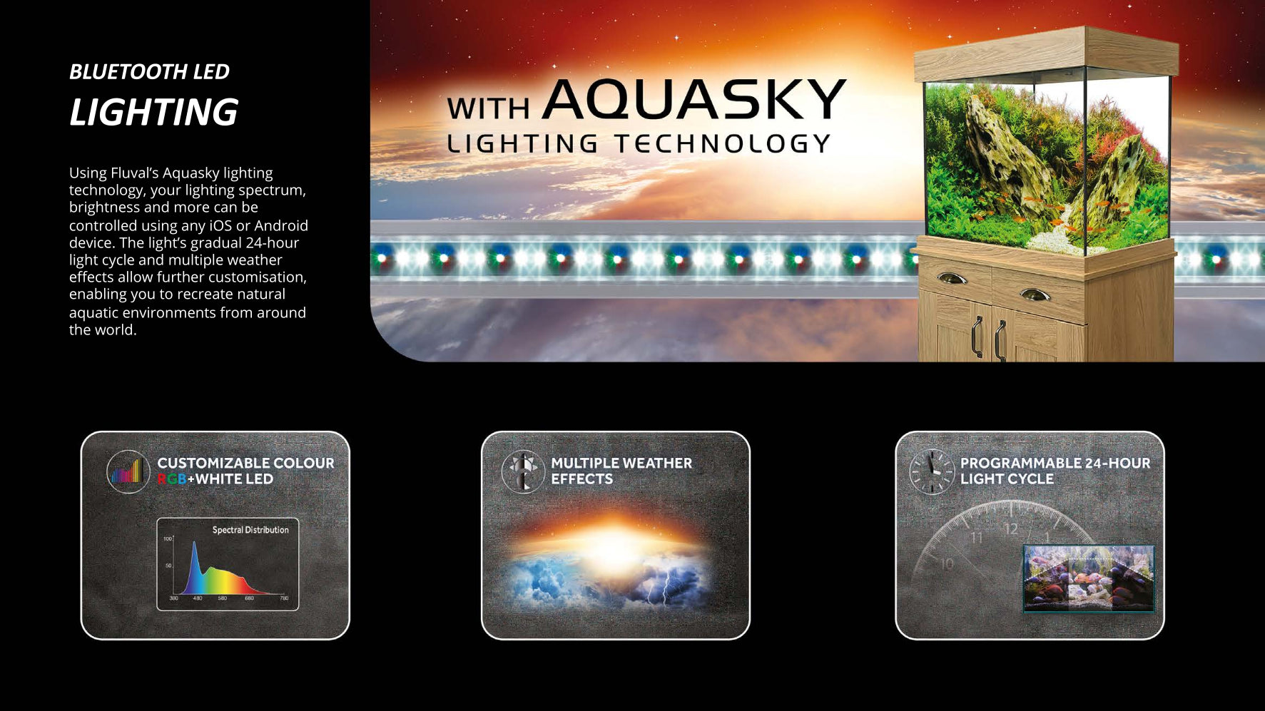 - Includes innovative Bluetooth LED lighting controlled via the Fluval SmartApp
