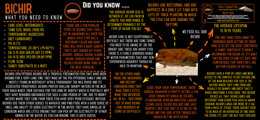 Tank Mates: Choose tank mates carefully; compatible with larger fish that cannot be easily swallowed. Avoid small, slow-moving fish, as they may become unintended prey. Ideal companions include larger cichlids, catfish, and other similarly sized bichirs.
