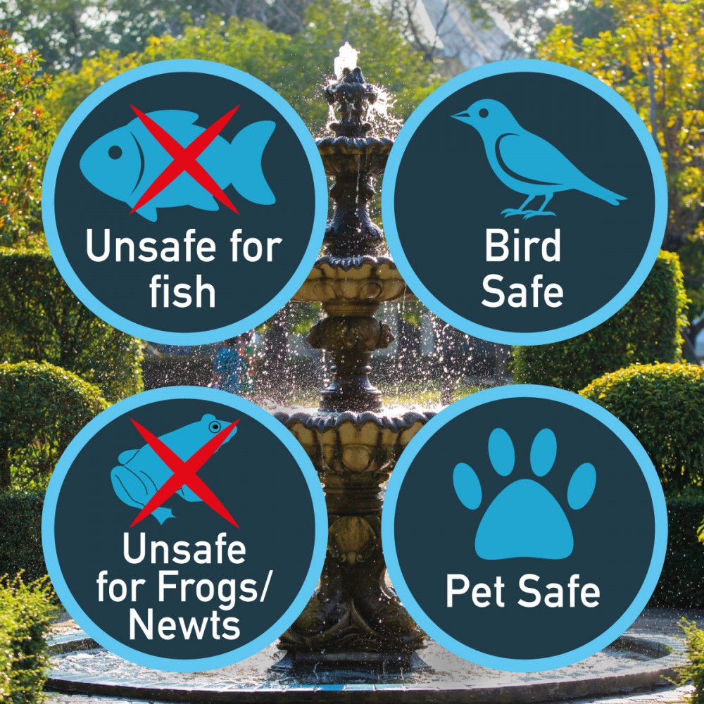 • Wide Compatibility: Safe for plastic, stone, concrete, metal, resin, and fibreglass water features
