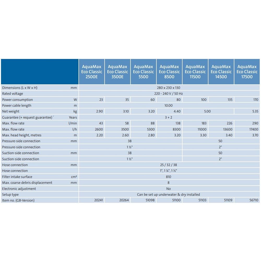 The Aquamax Eco Classic 8500 Pond Pump from Oase is the very latest version of Oase's high performance Aquamax Eco range of solids handling filter and waterfall pumps. The introduction of the Oase Aquamax Eco Classic sees a full redesign resulting in an entry level class of filter and watercourse pump from Oase.