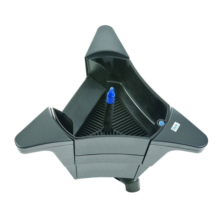 Leaves, pollen or other algae nutrients get into pond water via the surface. OASE skimmers powerfully and effectively pull this debris from the surface into the collection basket. Thus the debris is removed from the pond Eco-system before it stresses the pond. The result is clearly improved water quality and viewing depth through a reduced nutrient balance.