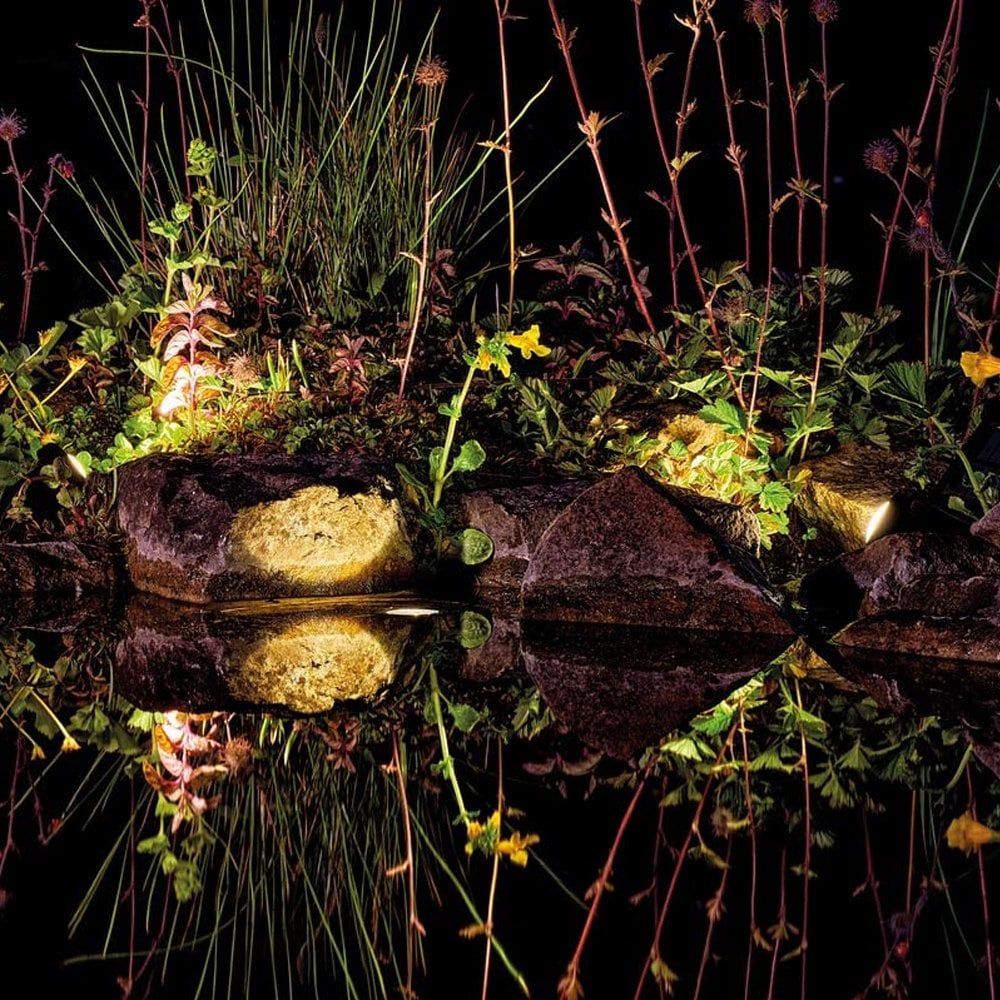 The PondoSolar LED Set 3 from Pontec features 3 compact warm white LED spotlights complete with solar panel and lithium-ion rechargeable battery. Suitable for submerged pond installation as well as for use in the garden, the light set has a 5 metre cable running from the solar panel to the first light, then 1.5m to each further light, running in series.