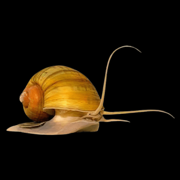 Overview: Pomacea canaliculata, commonly known as the Golden Apple Snail, is a freshwater snail species originating from South America. Popular in the aquarium hobby, these snails are recognized for their vibrant golden-yellow shells and unique appearance.